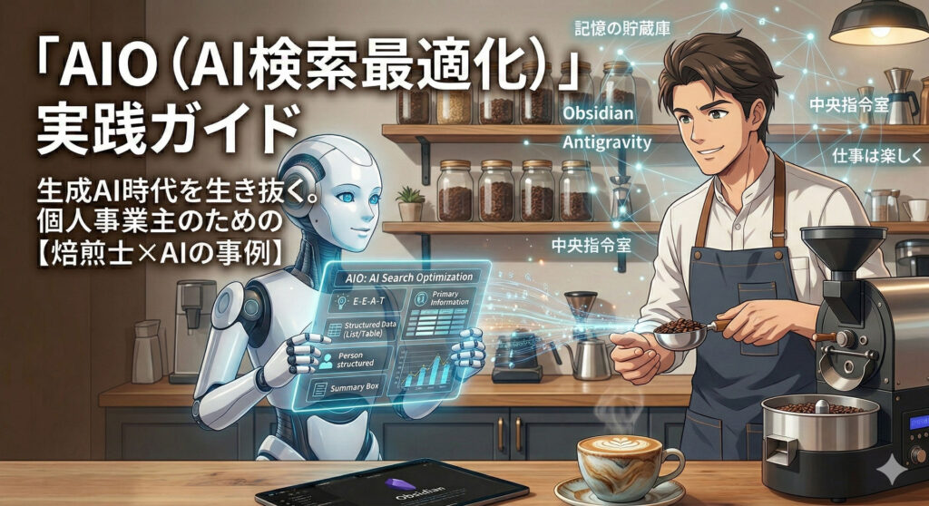 検索の主流が生成AIへと変わる今、小規模事業者が生き残るための「AIO(AI検索最適化)」の具体策を公開。焙煎士の実体験とObsidianを利用したAI中央指令室の構築事例から、AIに選ばれる一次情報の発信方法を分かりやすく解説します。
