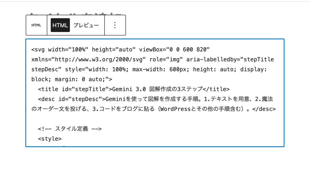 ステップ3:出てきた「コード」を記事に貼る